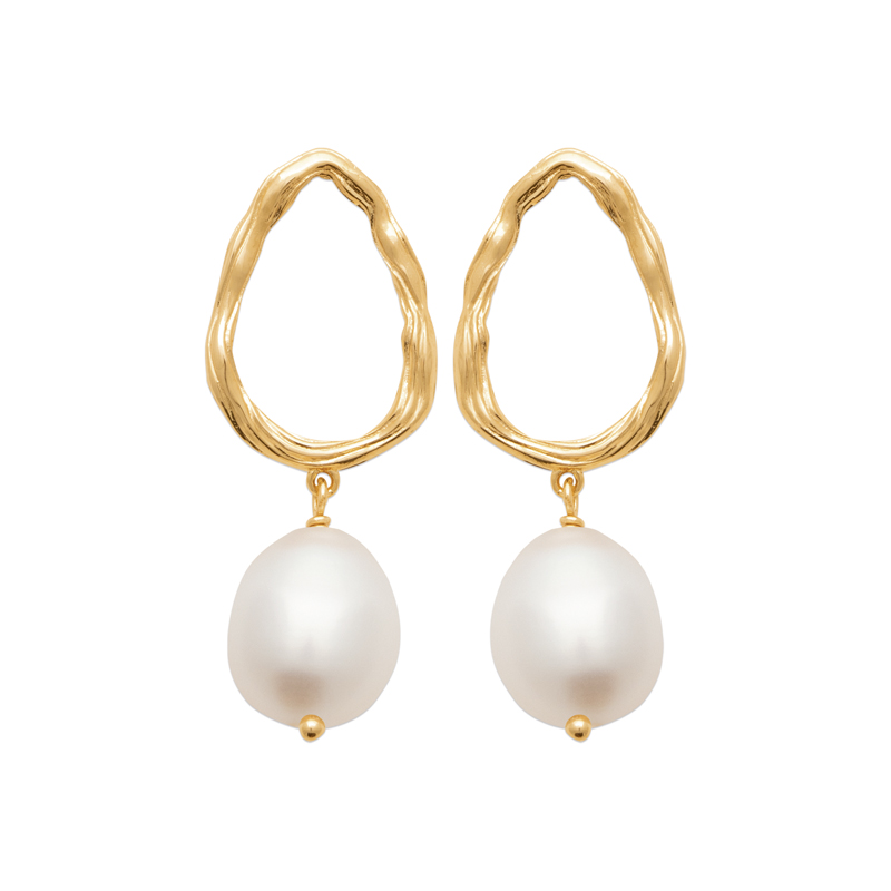 Refined and timeless, these stud earrings feature a twisted oval design finished in 18ct yellow-plated alloy, complete with a delicate pearl drop. Elegant yet versatile, they add a touch of sophistication to any outfit.